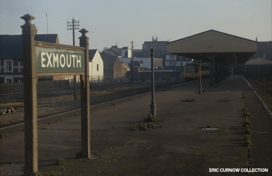 Exmouth Station as I saw it on my first visit. The concrete fixtures and corporate Southern Railway Running-In Board’s days are numbered, as is the size of the station and station building, being rationalised to a 3-car DMU shuttle service to Exeter. Grass and weeds poke from between concrete slabs, and areas to either side have had trackwork removed – a sad sight indeed. 730218A01-EXM-PLTFM-VI__S