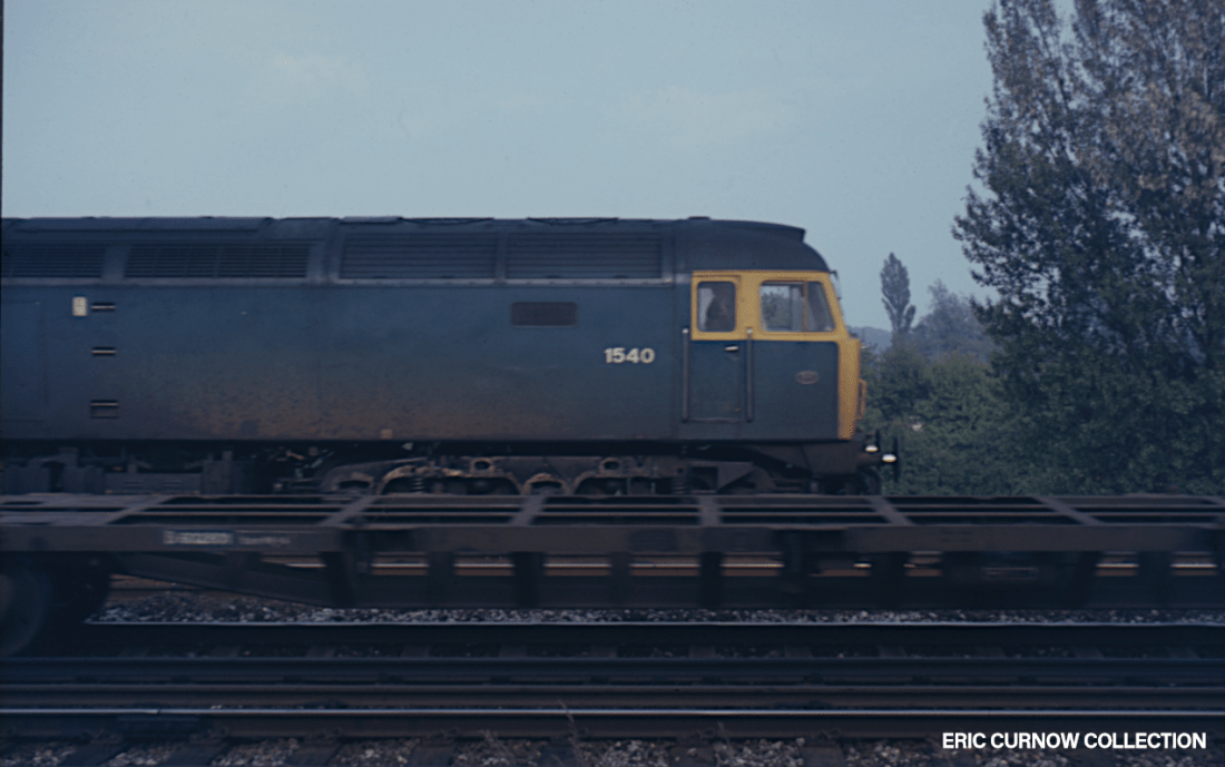 East Coldrenick is near Lostwithiel, and this image shows 47151 passing near on 13th June 1981. The graceful granite bridge in the background shows it and its access ramps have been added onto the landscpe, and the wooden boundary fence uprights seem remarkably free from overgrowth, despite their age. The Type 4 still has a glass headcode box, but with “dominos”. 810613A01-LOS-47151-PAS_D