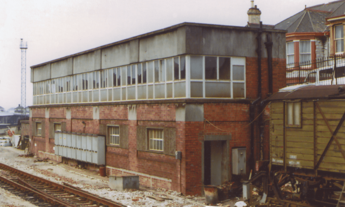 Not a very flattering image of Plymouth’s Power Signal Box at the west end of the station, built out from the end of Platform 1. It always seemed to me as a bit too ‘futeristic’ for the railway of the time, and the architectural style a bit too ‘brutal’. Still, as I was familiar with semaphores for most of my train spotting II found so many electric signals together very interesting. 820906A07-PLY-SIG_B-VI_SW