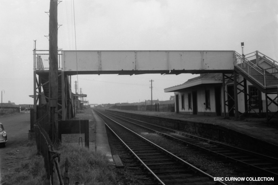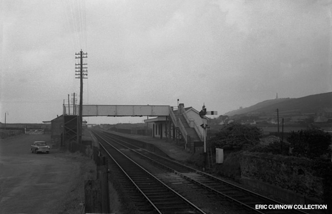 A grim picture of a grim location – Carn Brea station amid industrial remains and scattered cottages. Closed two years earlier, it is devoid of anything easily removable, weeds have sprouted on the platforms, and there doesn’t seem to be any broken windows or paint daubing from vandals – the semaphore signal suggesting the signal box still housed a deterring presence. 63###AL01-CNB-STATN-VIS_E