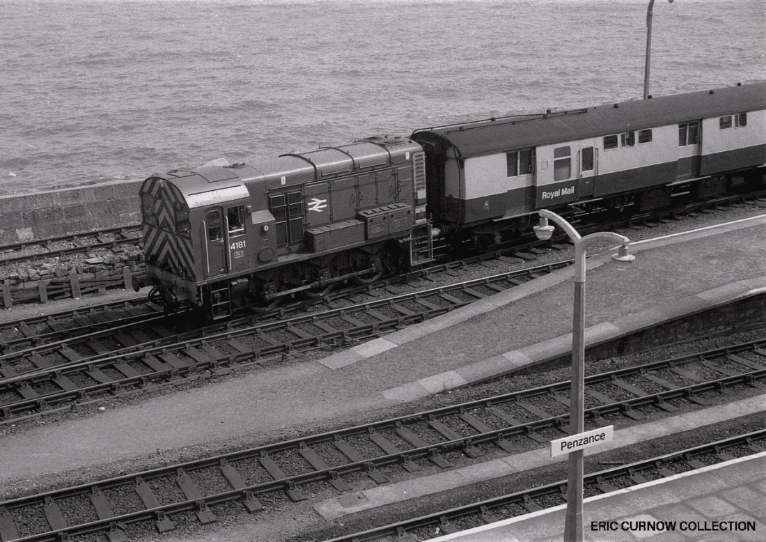If I arrived early at the station on a Saturday morning, I’d generally see the down sleeper at the platform, headed by a Western or Brush ’47, or the sleeping cars being serviced at ‘Sloper’s Siding’ – a long siding westwards of Ponsandane Box, inland of the main lines. Regardless of the fact that my grandfather had now switched from parcel delivery to carriage cleaner, the cleaning team had a well-deserved reputation for the quality of their work, and I’d often notice the crystal-clear windows on early departures from Penzance which I was aboard. In those days rubbish was removed and burned on the opposite trackside, where there was a granite path between the boundary fence and sea defence boulders. Rats lived off the “pickings” which hadn’t got burnt, and using this path in the early morning to get to the sheds you’d often see or hear one or two scuttling for cover.