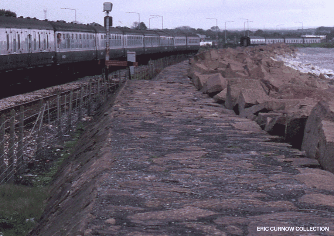 To get to the sheds from the station in those days one could either follow the recommended ‘Loco Shed Book’ route along the A30 road eastwards, or take the seaside alternative that was infinitely better for viewing railway movements. The latter involved a quick circumvention of the station yard until, having scrambled onto the sea wall, we felt safe from accusations of trespass, as we could theoretically have arrived there from the beach (tide permitting). In the Summer it was a nice spot to just sit and watch station movements from, or if the sun was too hot, to float in the cool water for a while and enjoy the panoramic view across to Long Rock – where the arrival of a down train could just be determined.