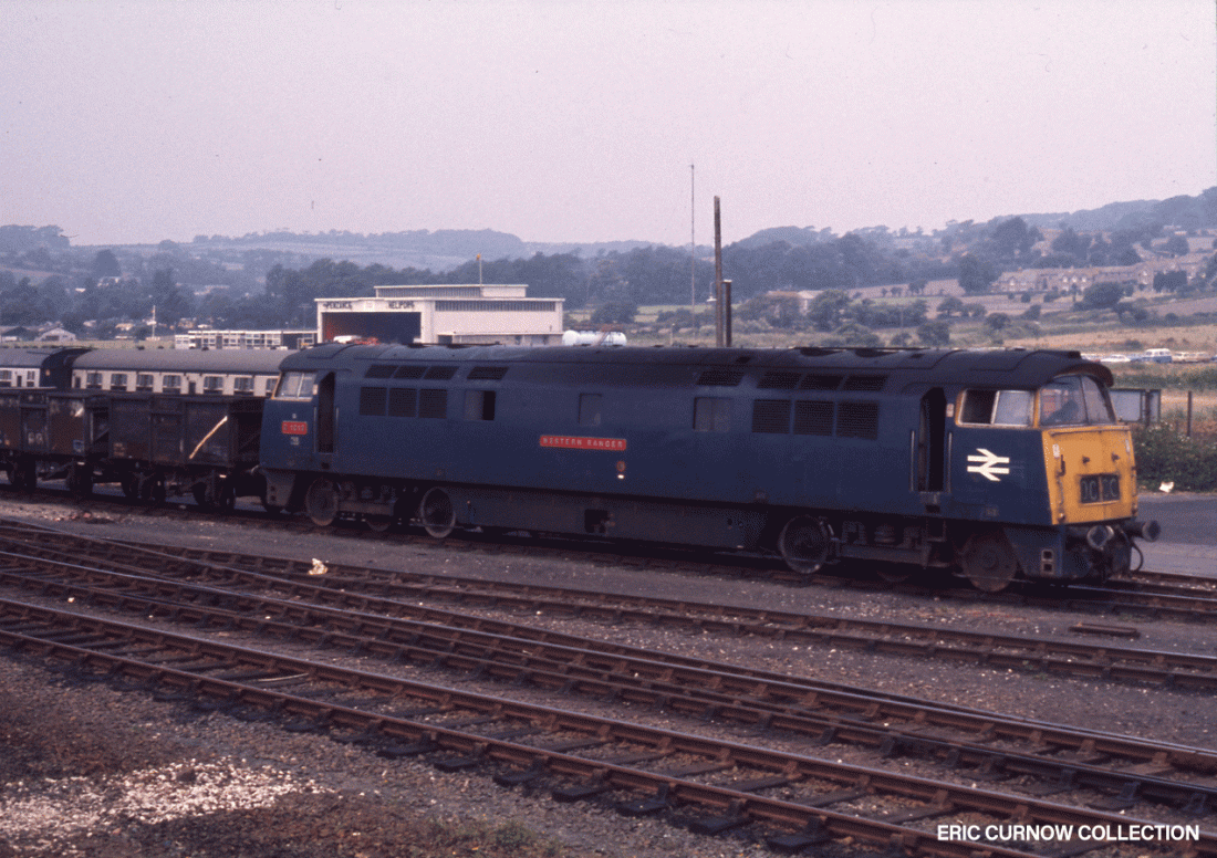 With 08951 being pushed to the back of those sheds for a few weeks at Long Rock, both goods yard and station shunting were carried out by Type 4’s for a while. 1066 “WESTERN PREFECT” and 1067 “WESTERN DRUID” visited, with nameplates so dirty they were barely readable, and D1003 of Z- condition contrasted with 1024, “WESTERN HUNTSMAN” which arrived in ex-Works appearance. Simply for the record, on 5th March in Redruth, another new era was heralded as I saw my first Class 50 travelling light engine on the down line across the viaduct, presumably on clearance trials, and discovered it was 50027 as it returned eastwards.