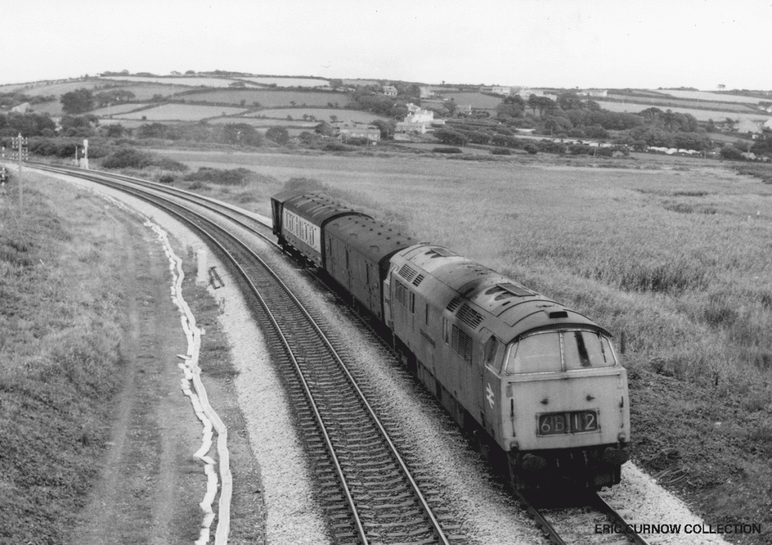 The most familiar stretch of the line to me then was that from Marazion bridge into the terminus – the stretch that ran along the coast. The line from inland curves from the marshes beneath the overbridge here, and westbound trains using it would generally take the curve at speed and try to coast from then on until it arrived to trundle over the pointwork into Penzance Station. On the far side of Marazion station is an open crossing guarded by “kissing gates”, and so a horn blast as the train thundered through the station was usually long and shrill, and depending on the wind direction, could sometimes even be heard in Penzance. It was a good indicator to warn me, if I was wandering by the water’s edge further down the line, to make my way to the line to see what was coming.