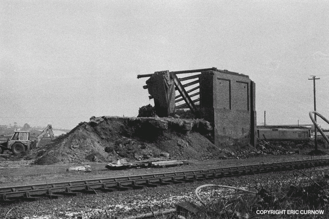 Not only were the last “mobile” remnants of GWR philosophy fading with the rundown and gradual disappearance of the class 52 Westerns, but in West Cornwall the residual architecture of that company was also being swept away. Contractors’ buildings had arrived on Long Rock depot in mid-March and by less than a month later, the huge coaling tower and the hump it sat on – which had dominated the approach to the town since the 1930’s – were removed. Very sad days for me! I had sometimes lain on it’s flowery seaward side in the sun watching rail movements and the sea, and more often used it as a refuge from the rain and vantage point to survey the shed – when the wind wasn’t whistling through it!