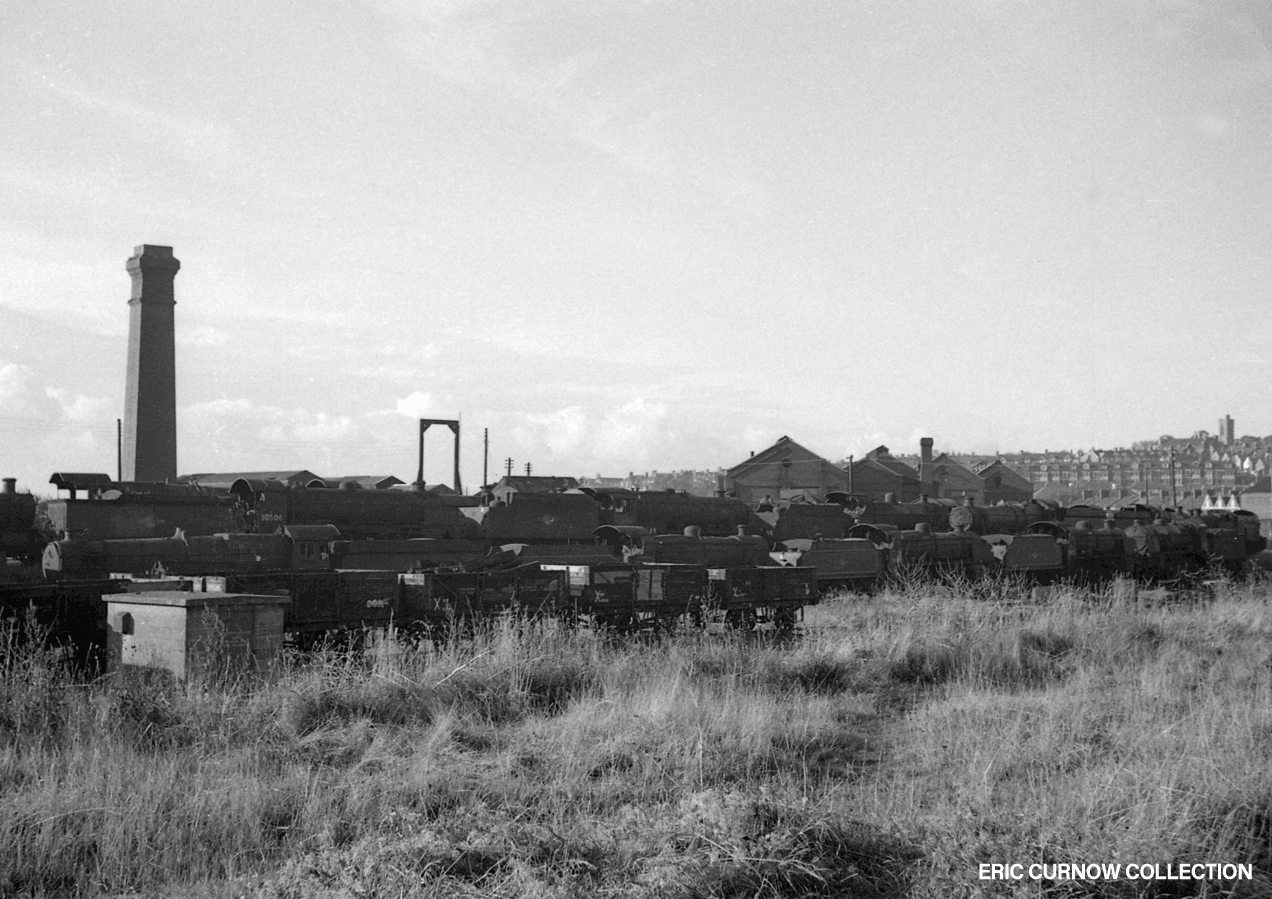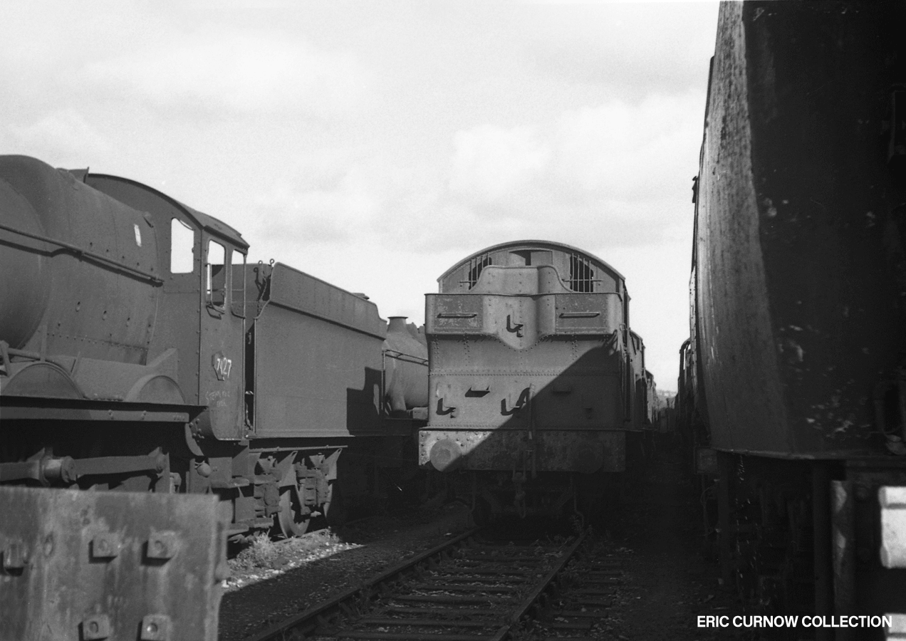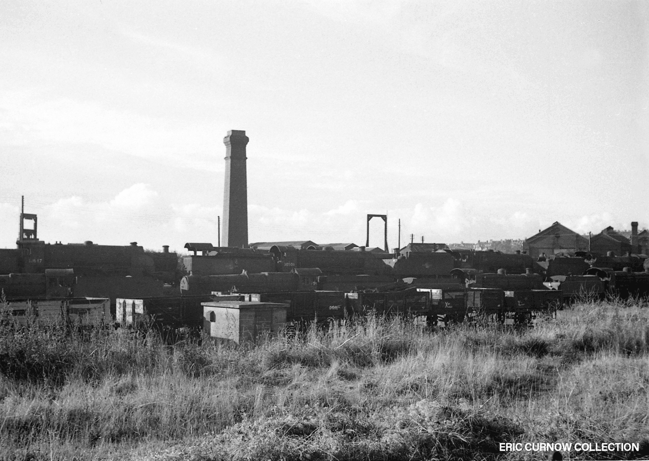 As I didn’t visit the site, I’ve only been able to ascertain details from what others have written, so the photographs are uncaptioned. The site formed a crescent from south east to north west, with long tracks amid grass, wild flowers and hawthorn, lined with loco after loco. At the north west end were buildings and oil storage tanks for the shipping in the pool behind: the sidings under the engines once housed thousands of wagons working to and from the coal fields. These pictures are from the same visit by someone in 1967.