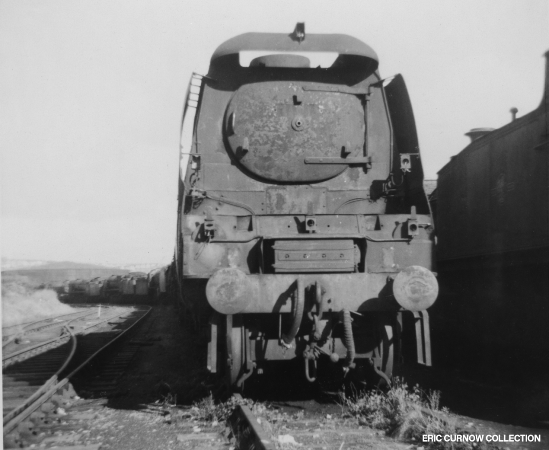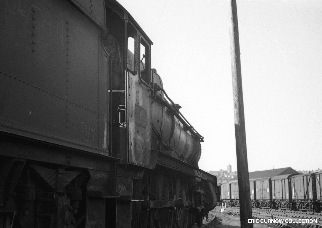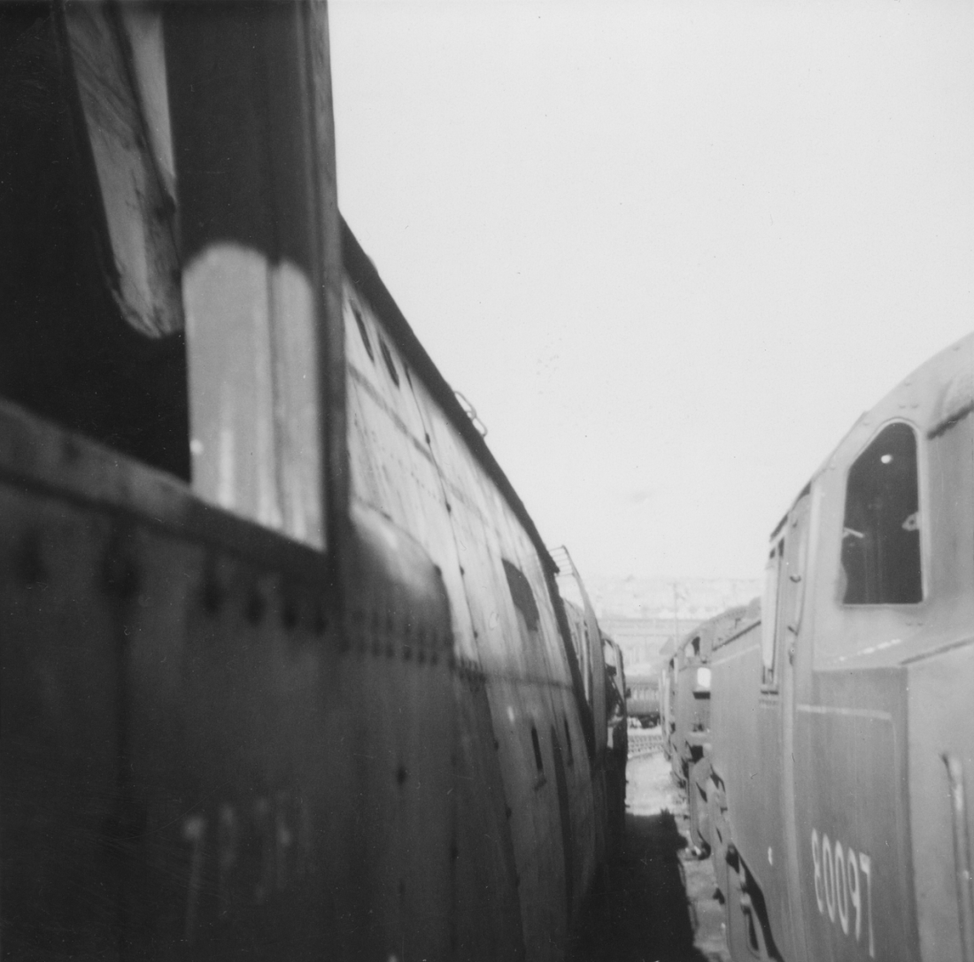 As I didn’t visit the site, I’ve only been able to ascertain details from what others have written, so the photographs are uncaptioned. The site formed a crescent from south east to north west, with long tracks amid grass, wild flowers and hawthorn, lined with loco after loco. At the north west end were buildings and oil storage tanks for the shipping in the pool behind: the sidings under the engines once housed thousands of wagons working to and from the coal fields. These pictures are from the same visit by someone in 1967.