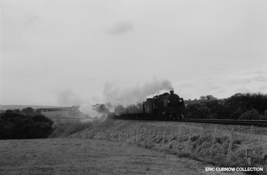 Exhaust smoke drifts eastward from 31901 – one of Maunsell’s ‘U’ class – with a local train bearing a Padstow headcode, as it struggles along an embankment close to Wadebridge on 12th August 1961. The association of well-kept trackway and indifferently maintained train was typical of this era showing pride in local work, but ambivilence to assets from elsewhere. 610812A01-WBG-31901-PAS_D