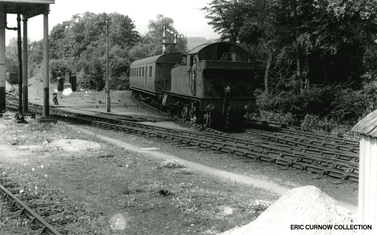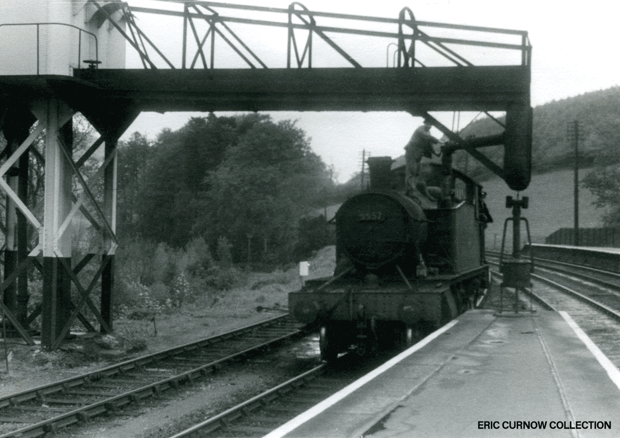 Descending the bank from the branch, 5519 rocks on its approach to Bodmin Road Station, the fireman keeping a keen watch for hazards as it slows towards its journey’s end. Unusual for a small station, a second water tower is provided. 5####BA01-BOD-s5519-PAS_I