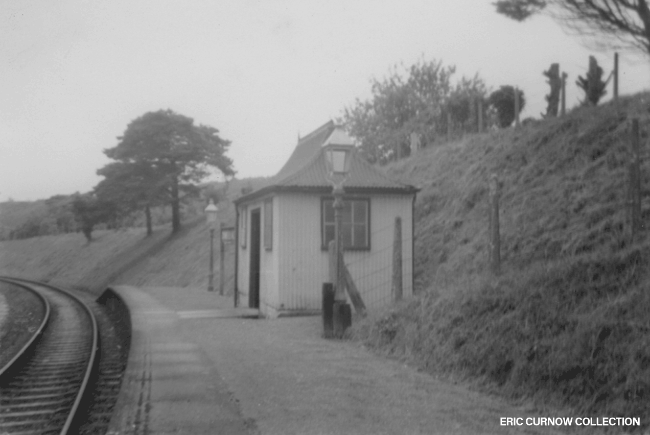 Dunmere Halt just outside of Bodmin North Station was still rail-connected and in good order on 12th August 1967 – even if the lighting was still from gas lamp structures. I first visited thirty years later, when it was merely the platform that had survived beside the cycleway. 65###AC01-DMR-STATN-VI__W
