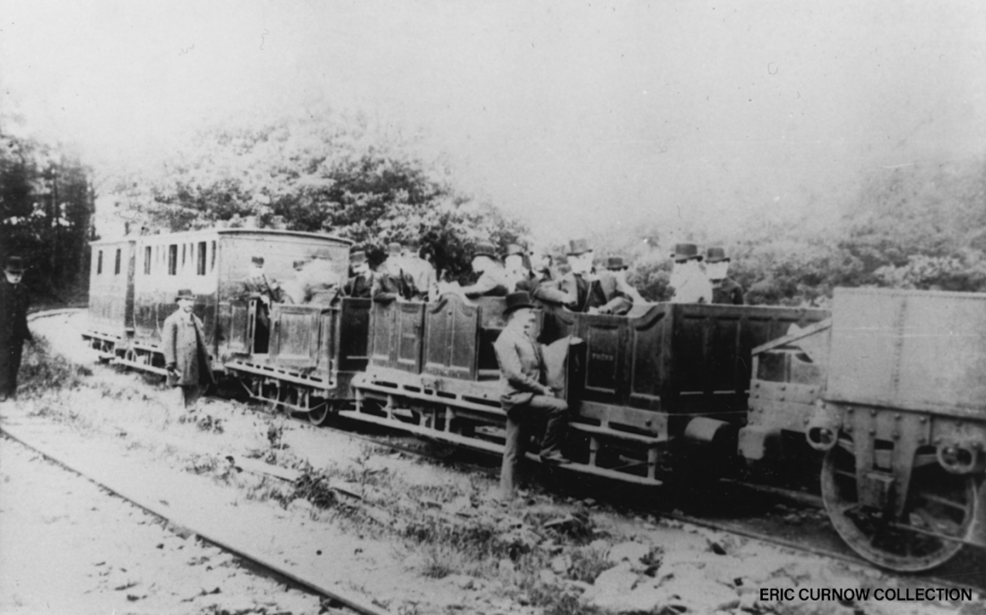 This really-interesting photo of the Bodmin & Wadebridge Railway circa 1888 shows what could be a junction – where the train has stopped and what, judging from their attire, could be the Directors inspecting the line at close hand. the rolling stock is stoutly built and a few examples are preserved by the National Railway Museum at York. 880629A01-UNK-COACH-PARKD