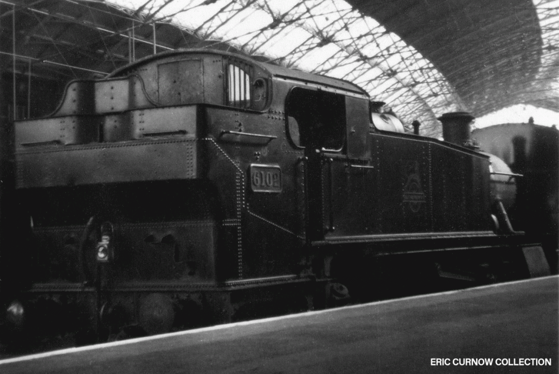 Another picture by the same railway employee (initials RJS?) at Easter 1953 of a loco in the curve of the main train shed at Bristol Temple Meads Station: this time ex-GWR 6102 with large cycling lion emblem either on a local service, or merely shunting stock. 5304#AA02-BRI-s6102-PAS_U