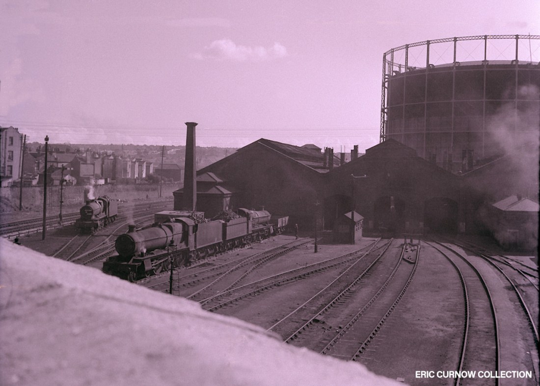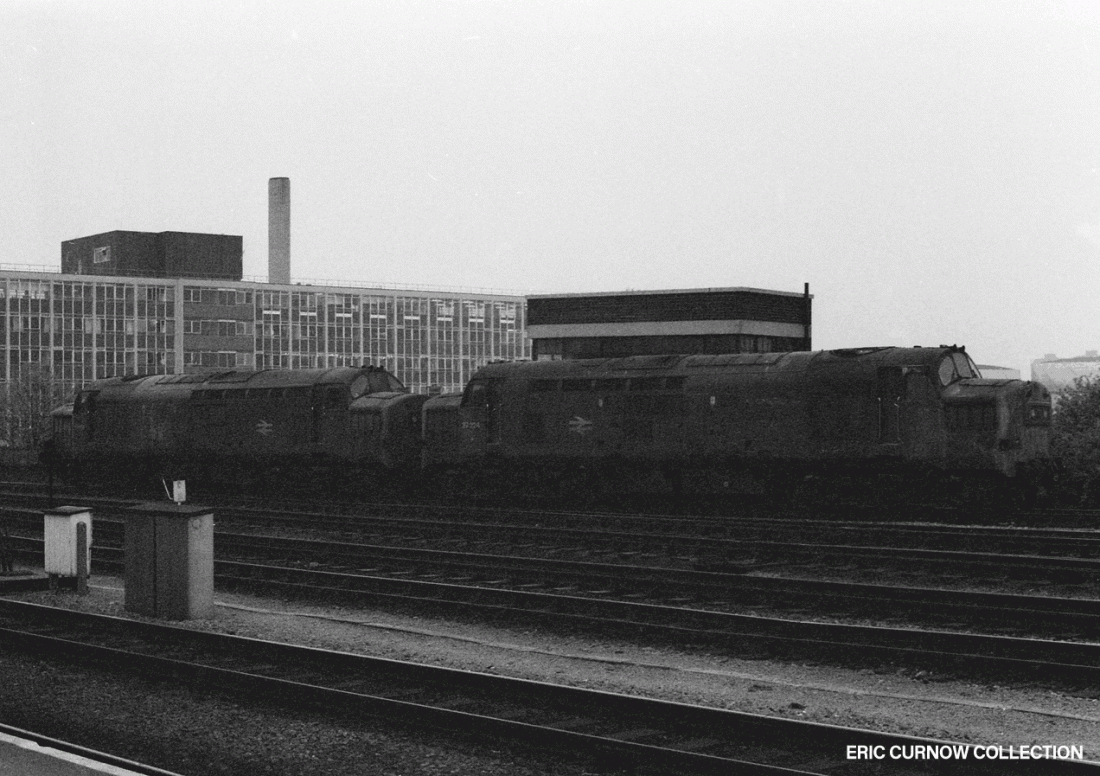 37224 and a classmate are paired together, running light engine into Bristol Bath Road depot past the signal box, specially rebuilt in robust style in WW2, and later demolished as part of the 1970 Bristol MAS re-signalling project. The Royal Mail sorting facility is in the left background, and gas holders to the right. 7####FT01-BRI-37XXX-LIG_D