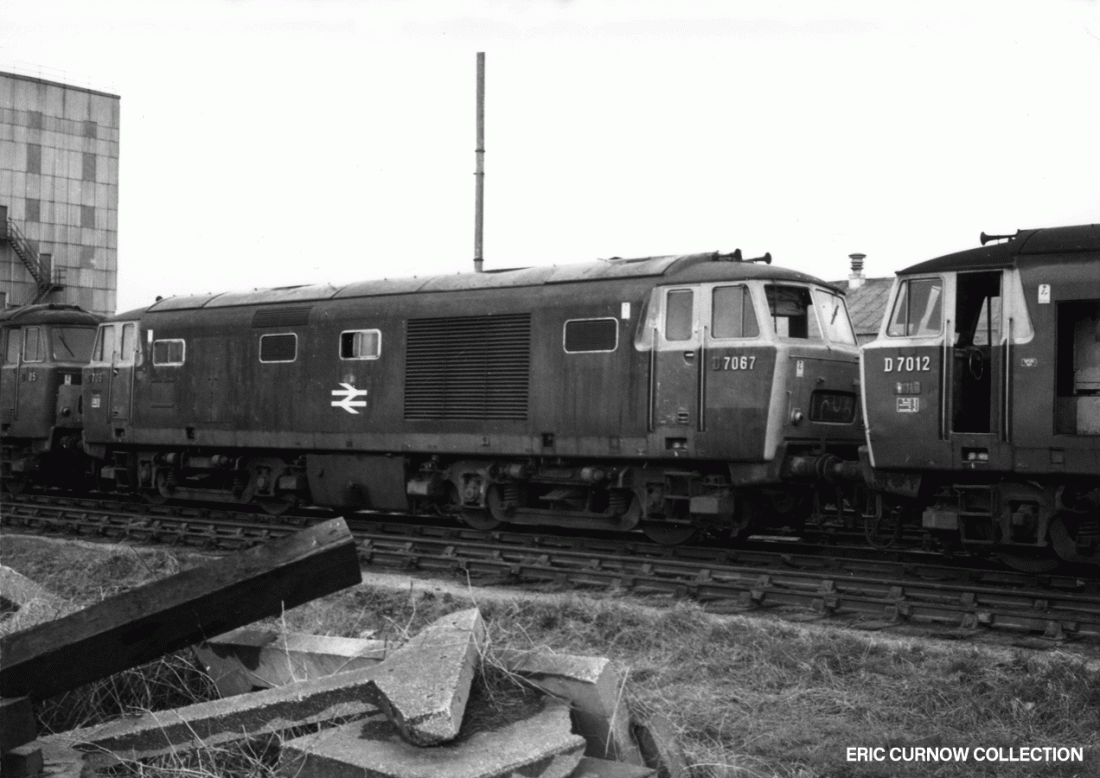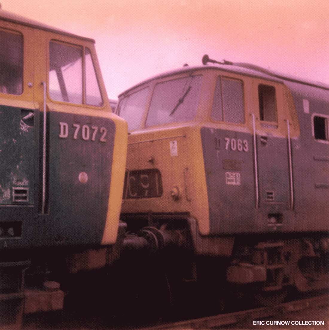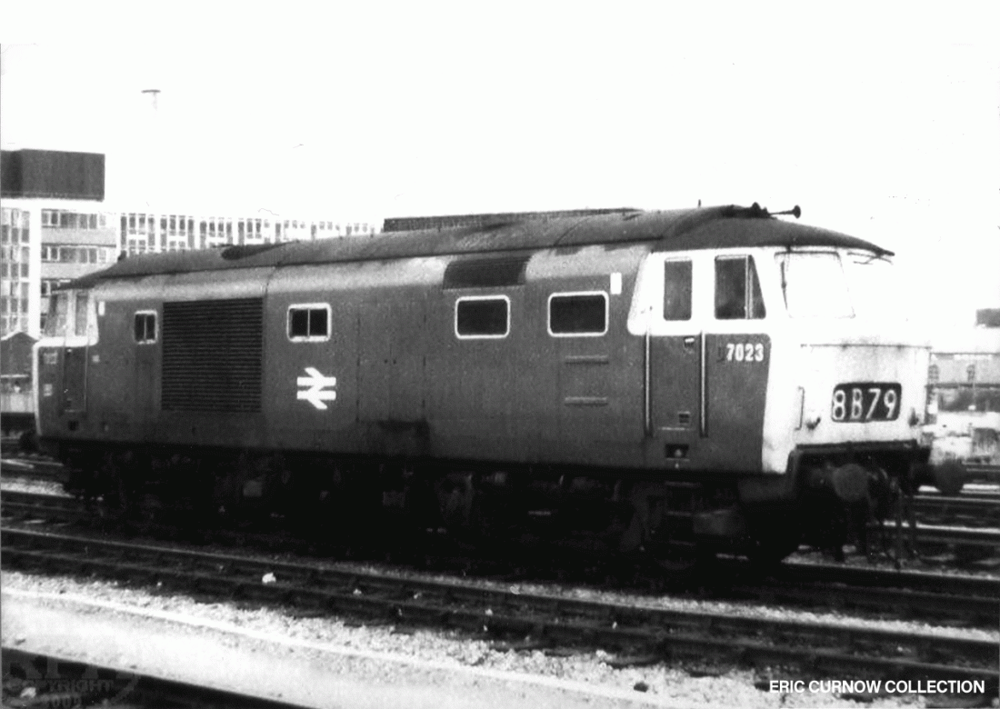 D7023, with the ‘D’ prefixes of its aluminum relief numbers painted over, rolls towards Bath Road depot from the access roads beside Bristol Temple Meads station. The loco’s bodysides are largely clean and respectable but, out of reach of the cleaners, its roofline is caked with exhaust deposit. 7####CL01-BRI-d7023-LIGHT
