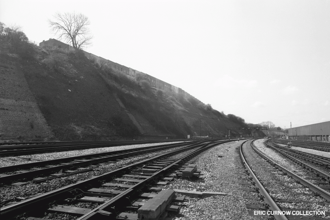 The limestone escarpment running down from the Mendips fronts onto Bristol railways, including this cliff at St Phillip’s Marsh requiring periodic maintenance. These pictures show work in connection with this, that you wouldn’t normally associate with the system. 890929A01-BTL-TRACK-VI__W