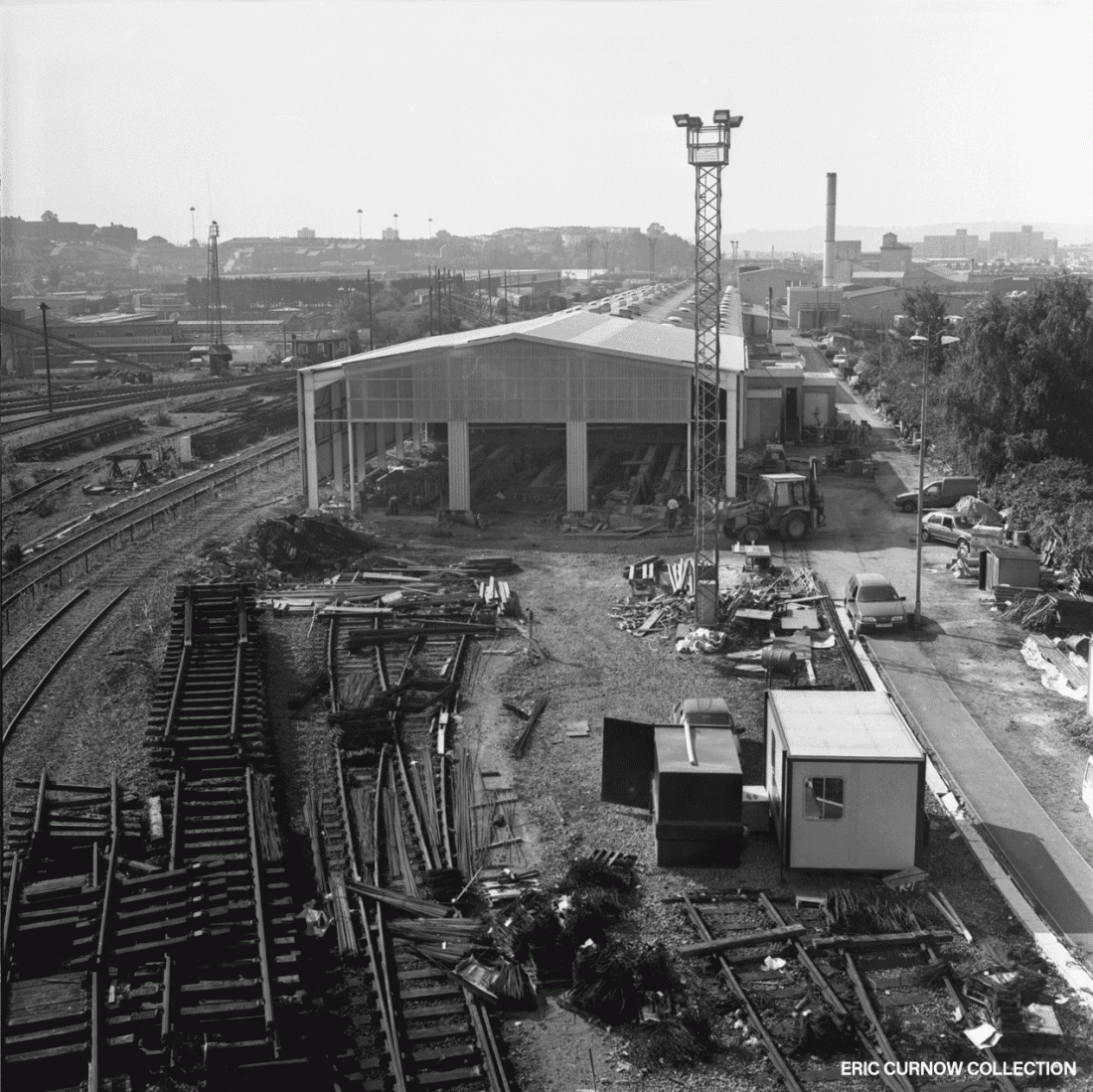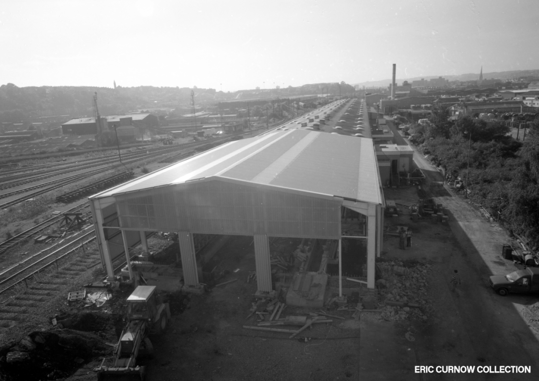 When the Western Region 7-car High Speed Train sets were extended by 2-cars, St Philip’s Marsh depot had to be enlarged and extended to cater for them properly. These pictures show the work in various stages of completion, both internally and externally. 890929A06-SPM-HSTDT-VI__W.