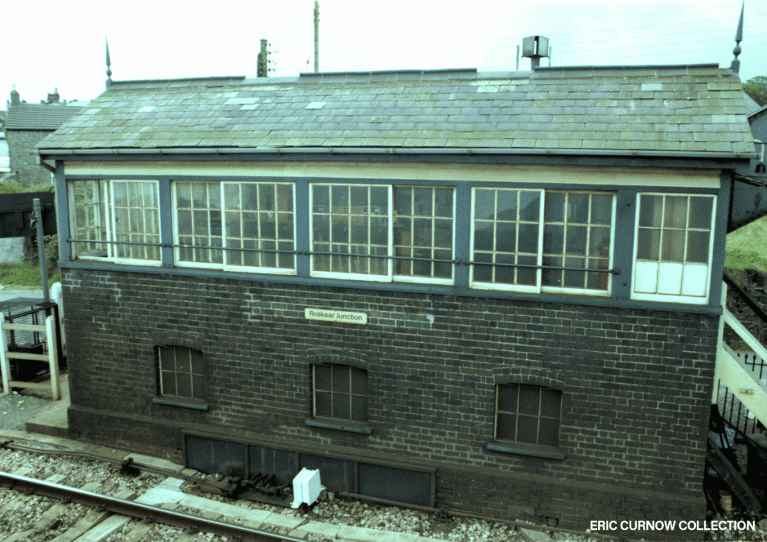 Roskear Signal Box – formerly “Roskear Junction Signal Box” – is little changed from GWR days, and though the points rodding is still in place, it no longer commands the spur to Holman’s Works – but does manage Camborne level crossing nearby remotely. 8####AP01-RKR-SIG_B-VI__E