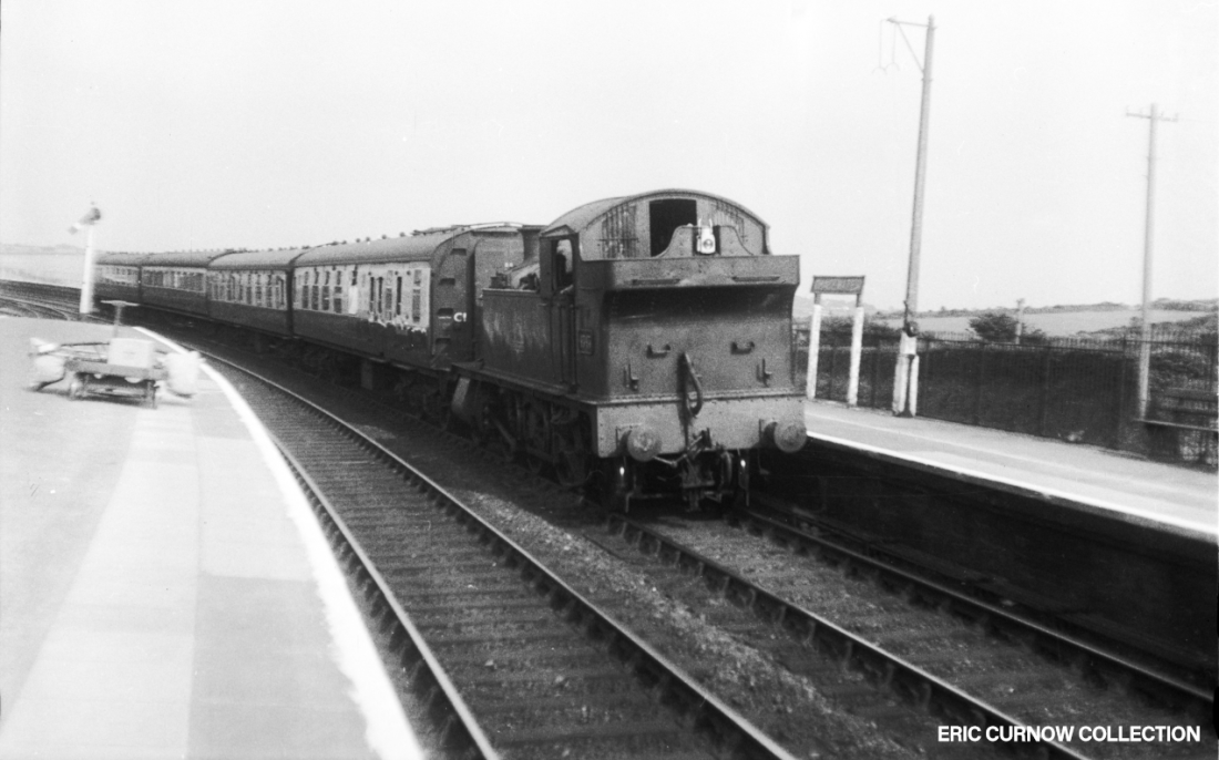With a cycling lion BR emblem on its tank side, 4588 is the branch engine leaving Chacewater for St Agnes and Perranporth. There is a mix of converging lines, with 4588’s route hugging the left side of the cutting along with points rodding and signal cabling. 3####AA01-CWR-s4588-PAS_O