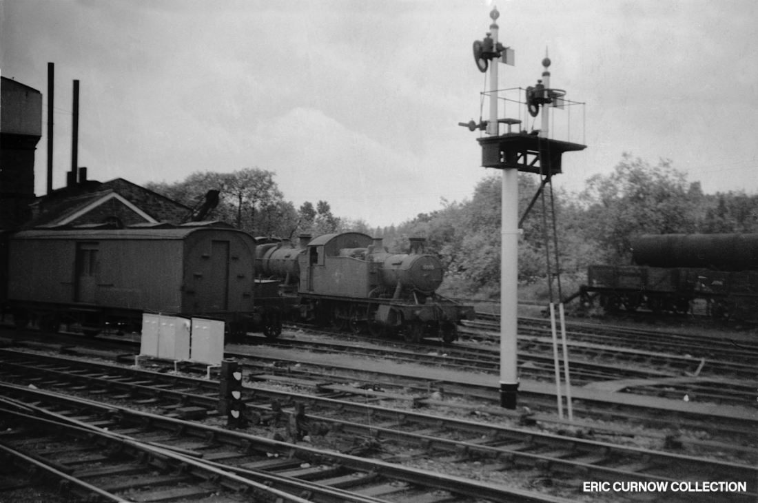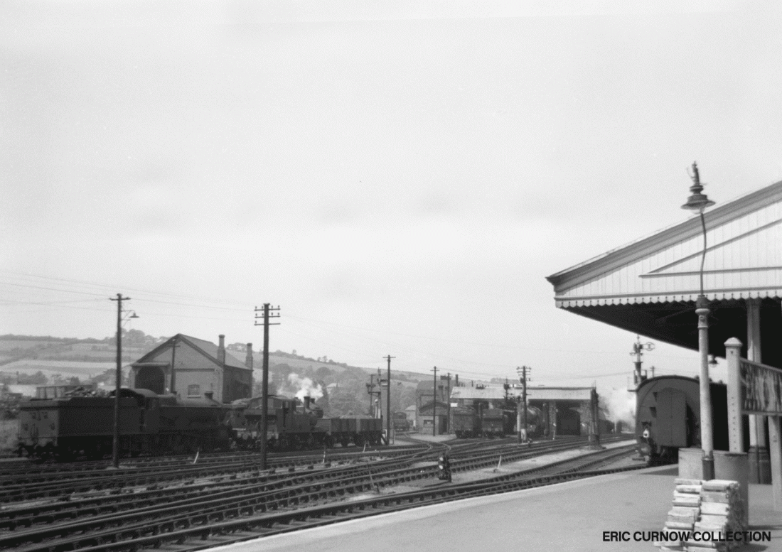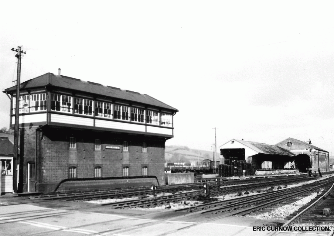 I’d often wondered what Exeter St David’s Engine Shed looked like before semi-demolition, and this picture shows the structure with other buildings still in situ. Although the signal posts are still wooden, the running in board shows this to be post nationalisation. 5####BL01-EXD-E_SHD-VI__N