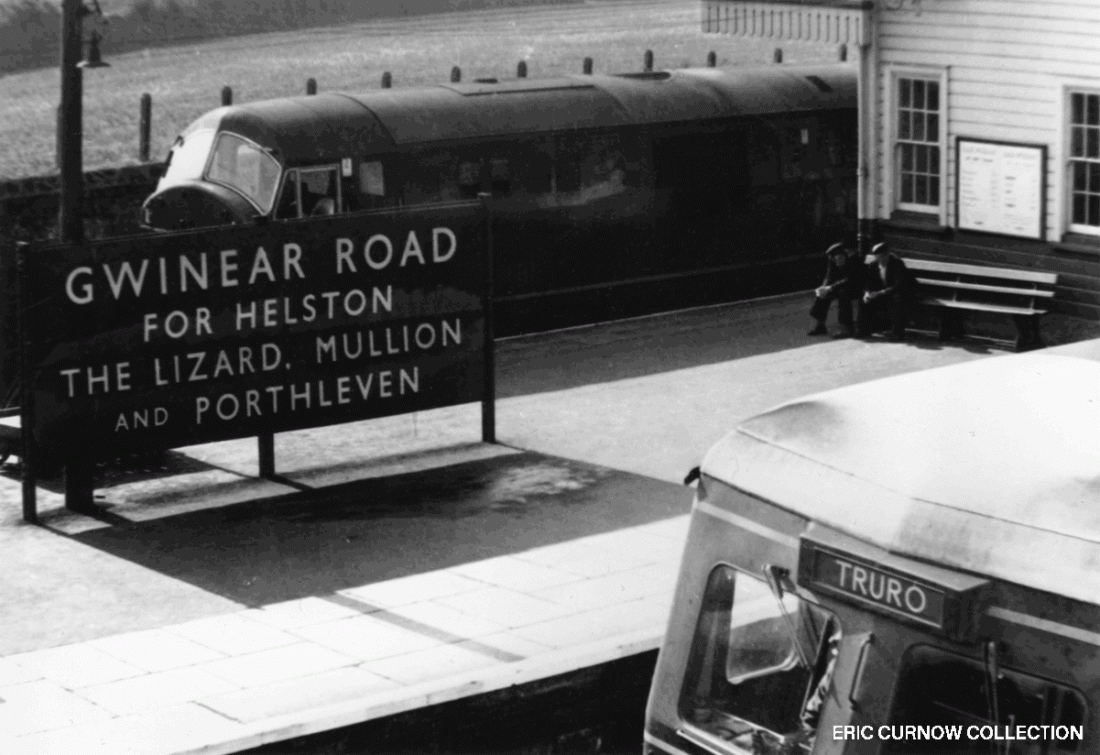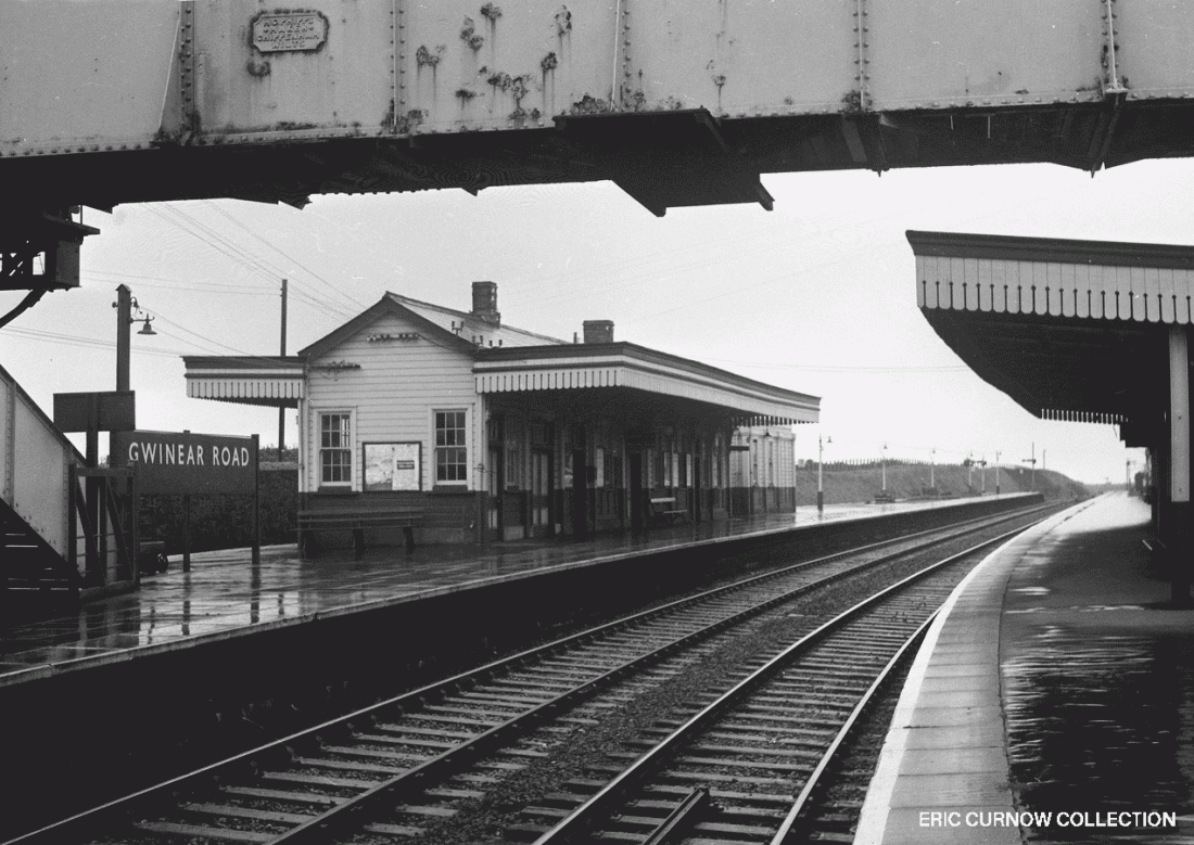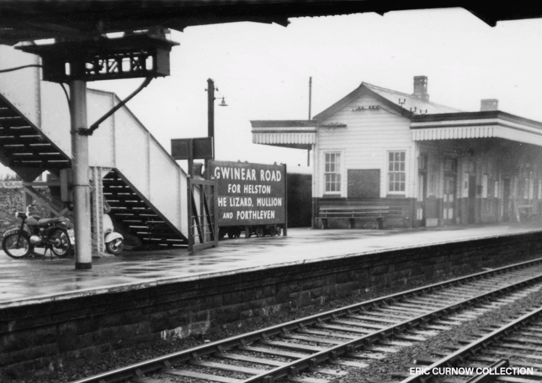 An official 1965 BR view of Gwinear Road Station with the gates closed to rail traffic, six months after closure of the station and the same before the signal box followed. The footbridge doesn’t carry soot deposits now diesels are in soul operation. 650428A01-GWI-STATN-VI__W