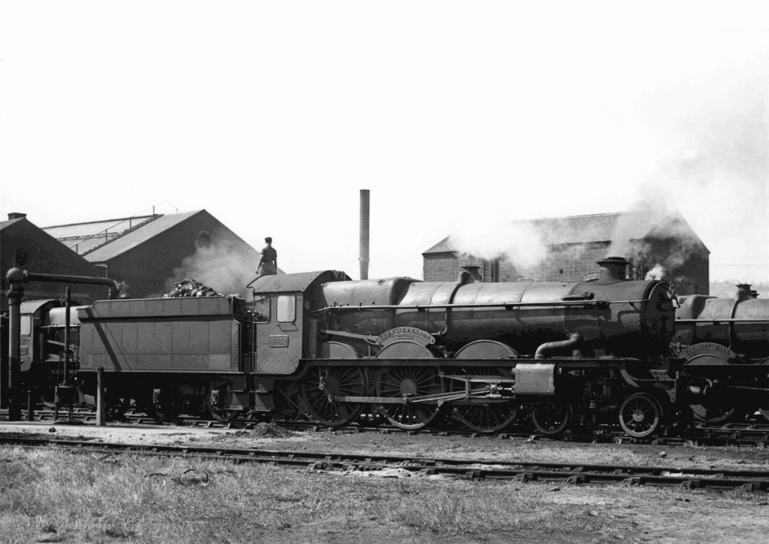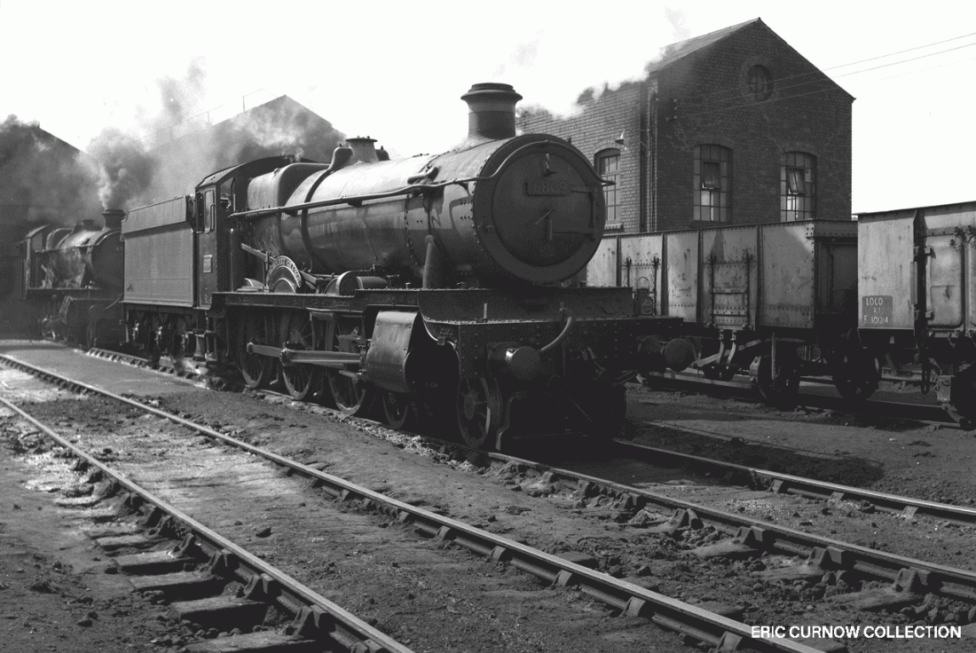 With a loaded tender of a lighter colour hue, 4931 “HANBURY HALL” sits in the sunshine on Long Rock shed. The differences of roof ventilation to the buildings seem to indicate different attempts to deal with the problem of overwhelming exhaust fumes. 5####BK01-LRK-s4931-PARKD