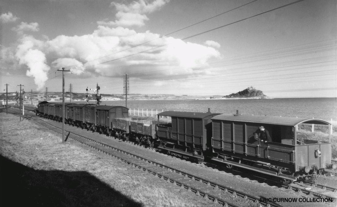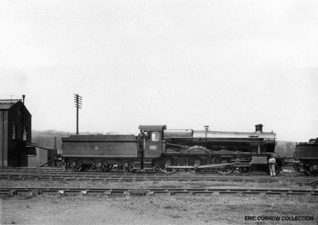 Looking every inch a loco in the finest GWR tradition, Penzance allocated 4911 “BOWDEN HALL” waits on Long Rock depot. It ended its days prematurely hit by a WW2 bomb in Plymouth; one of only two GWR locos lost through enemy action. 3####AC01-LRK-s4911-PARKD
