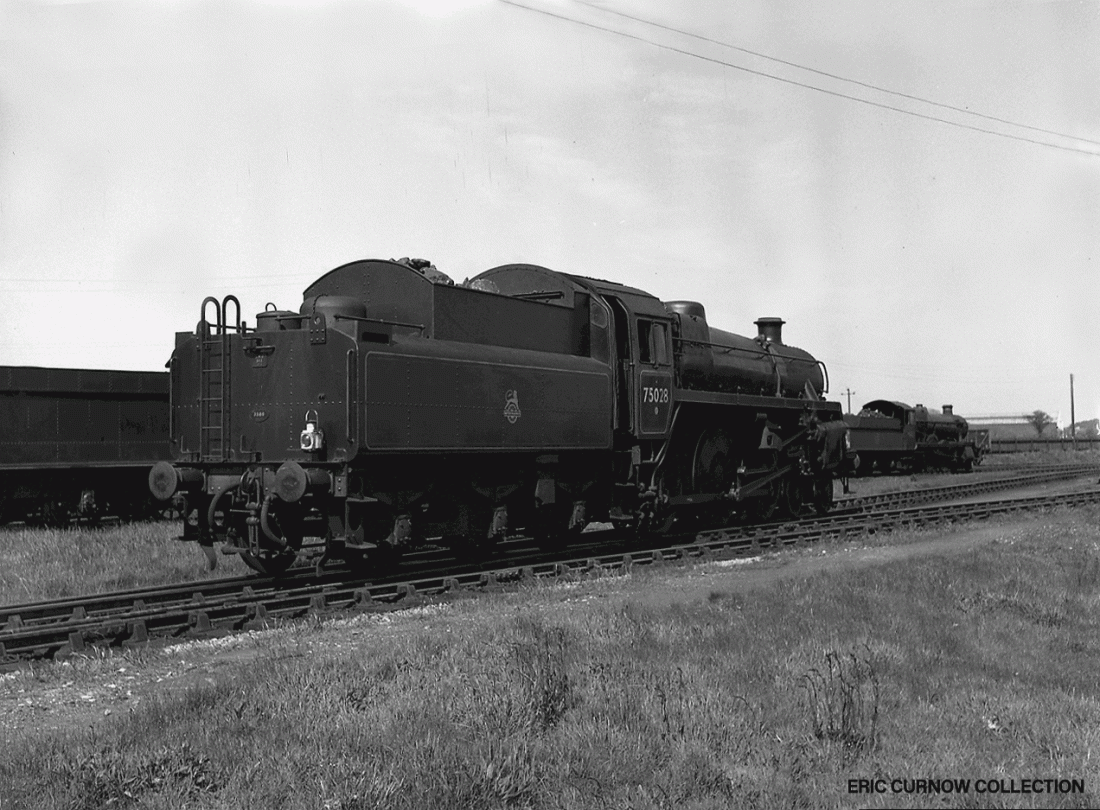 Standard Class 4 75028 is left alone on a storage road at Long Rock shed while other, GWR-derived, designs stand in more immediate use behind. It was said that BR standard designs weren’t particularly popular with local crews, and this picture is certainly a rarity. 550524A01-LRK-75028-PARKD