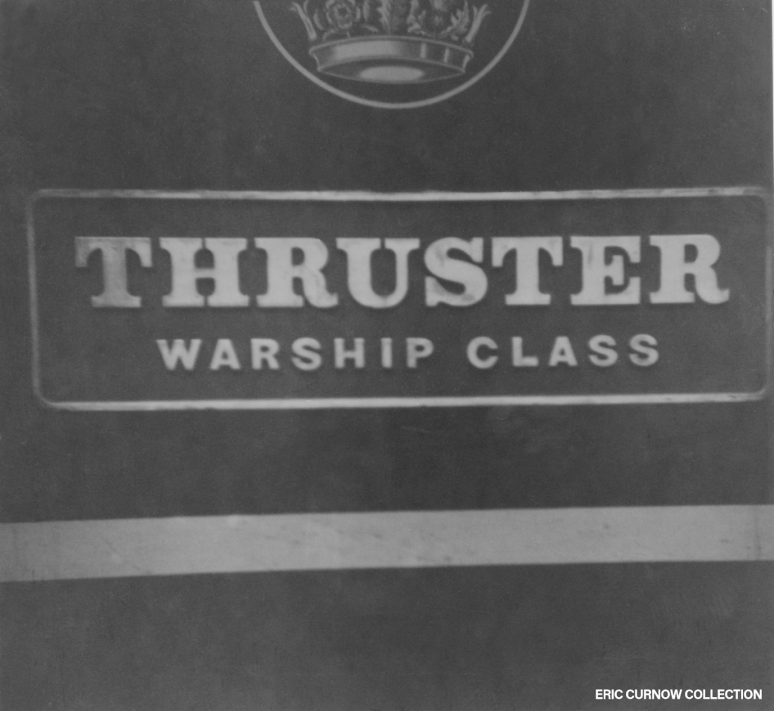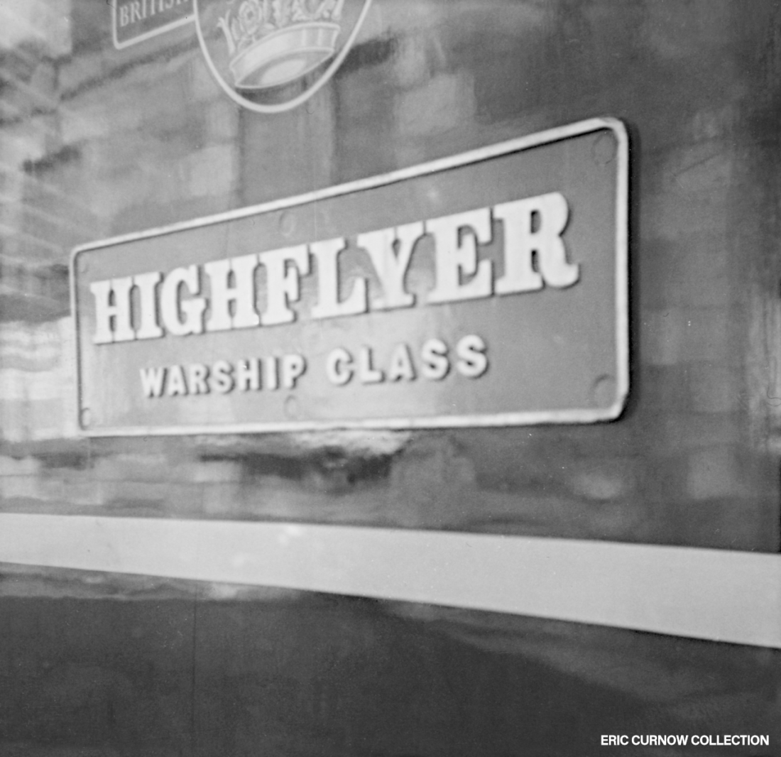 The nameplates of North British Locomotive Company-built D853 “THRUSTER” and Swindon-built D824 “HIGHFLYER” ‘Warships’ contrast a little in appearance as the latter seems to have a glossy sheen to it – probably repainted more recently. 6407##A15-PNZ–D853&D824-NMPLT