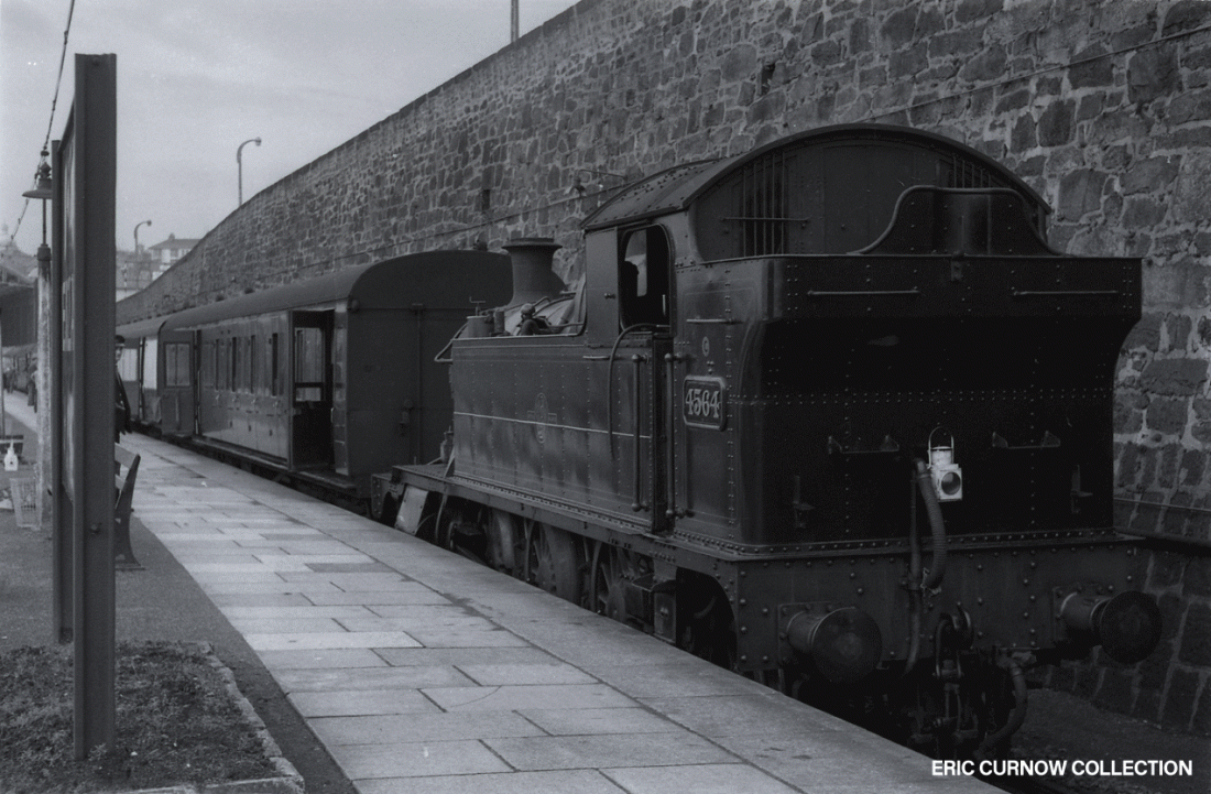 This 1960 view of Platform 1 shows 4564 ready to remove empty stock, once the doors have been pushed shut and permissions given. These larger engines seemed to sometimes replace the smaller pannier tanks on such under-powered duties. 601026A01-PNZ-s4564-SHU_S