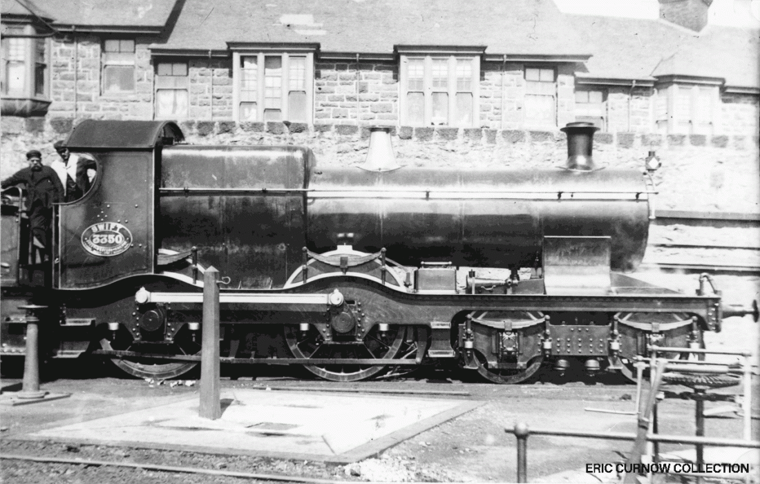 There seems to be a brand-new connecting rod on 3350 “SWIFT”, a 4-4-0 in the hands of a walrus-moustached driver and his fireman. Before the loco and beside the turntable end is what seems to be an ablution area, with hooked post for a hose. #####AK01-CYR-s3350-PARKD