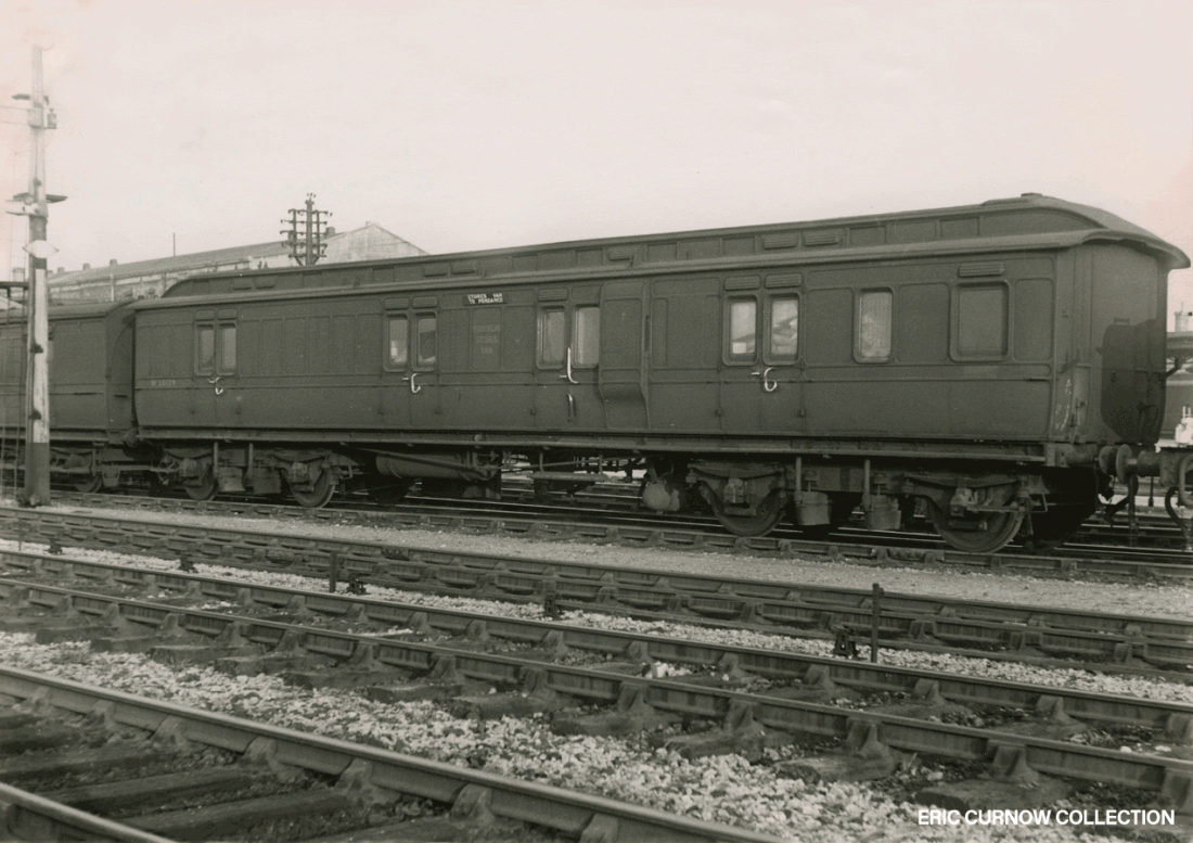 This is a strange inclusion, but the sign centred on this carriage reads “STORES VAN TO PENZANCE”, so it has some relevance. Taken at Swindon in March 1950, it must have been an unusual relic even then. 5003#AA01-UNK-COACH-PARKD