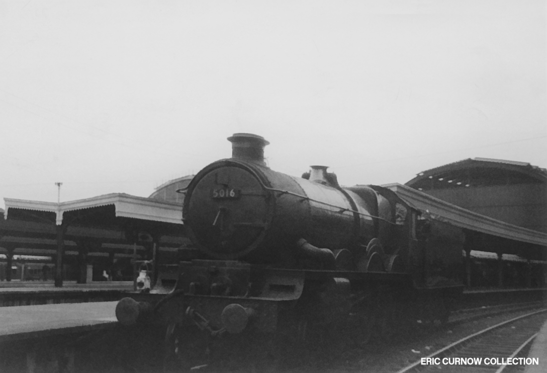 5016 “MONTGOMERY CASTLE” backs in to Paddington from servicing on 11th June 1962 prior to taking out the Paddington to Neath General relief service. It displays the requisite single left lamp on its front end for the short journey and has a high sided tender piled with coal. In the background are the roofs of the station, empty platforms, and platform awnings. 620611A06-PAD-s5016-LIG_U