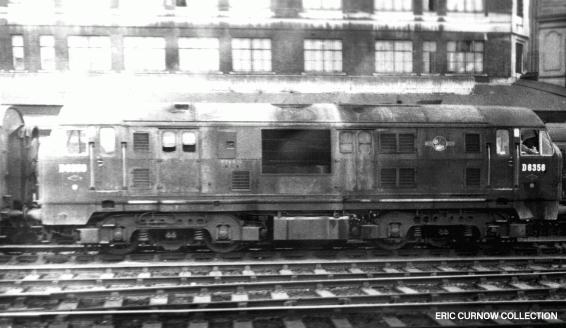 These unpromising photos were saved simply for their rarety value. Towards the end of their lives, D63XXs were used on empty stock workings between Old Oak Common Carriage Sidings and Paddington Station – often in awful appearance – no credit to the railway. 6####GT01-PAD-D6358-LIGHT