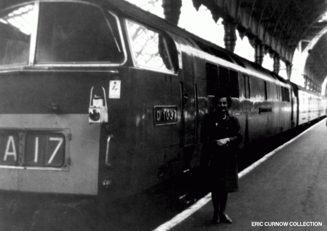 With both engines blasting away smokily, a ‘Western’ slowly draws away from Paddington Station as a ‘spotter is lost in his own thoughts, gazing at the loco’s numberplate, shedcode and RA panel. Such embellishments did give a certain “mystique” to it. 7510#AB01-PAD-D10##-PAS_D