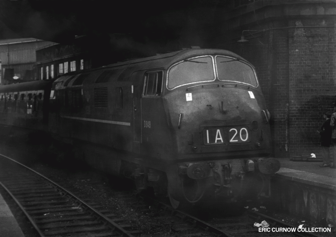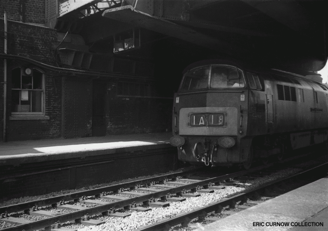 D1026 “WESTERN CENTURION” smokes away as the driver peers from the cab awaiting the “right away” for his ‘Special’ at Platform 1 of Paddington Station. Like much of the System at this time, the infrastructure is poor, but kept in reasonable shape. 6####BJ01-PAD-D1026-PAS_D