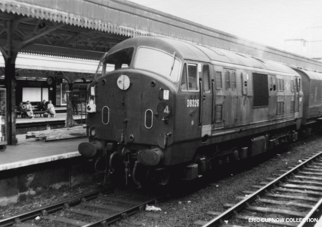 Although a stream of water is cascading from the platform awning, the weak sun catches the windscreen of a ‘Western’ and silhouettes the second man chatting to the driver as it awaits departure. It also gleams from the windscreen surrounds and handrails. 690500A01-PAD-D10##-PAS_D
