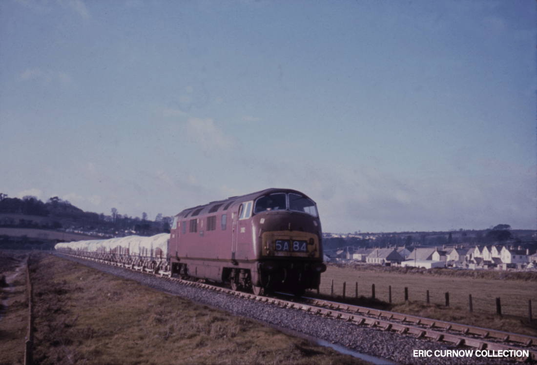 D862 “VIKING” pulls the 12.10 St Blazey to Fowey china clay at Par on 1st January 1968. I think this is my favourite ‘Warship’ photograph ever; the loco in maroon; the full train representing prosperity; the landscape uncluttered; capped off by it being a lovely Cornish day. I believe I remember witnessing such a sight myself, at the footcrossing further right. 1968###AH01-PAR–D862-C_CLY