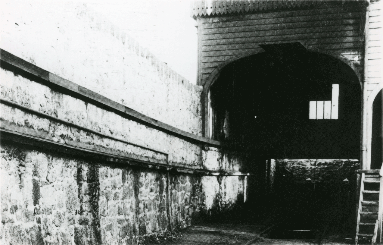 At the opposite end of the station area the Coaling Stage for the second Engine Shed lies squashed between the road wall, the Water Tank and Chyandour Brook. The tightness of the site is clearly seen from the narrow steps and shelter built onto the wall. #####AP01-PNZ-COALG-VI_NE