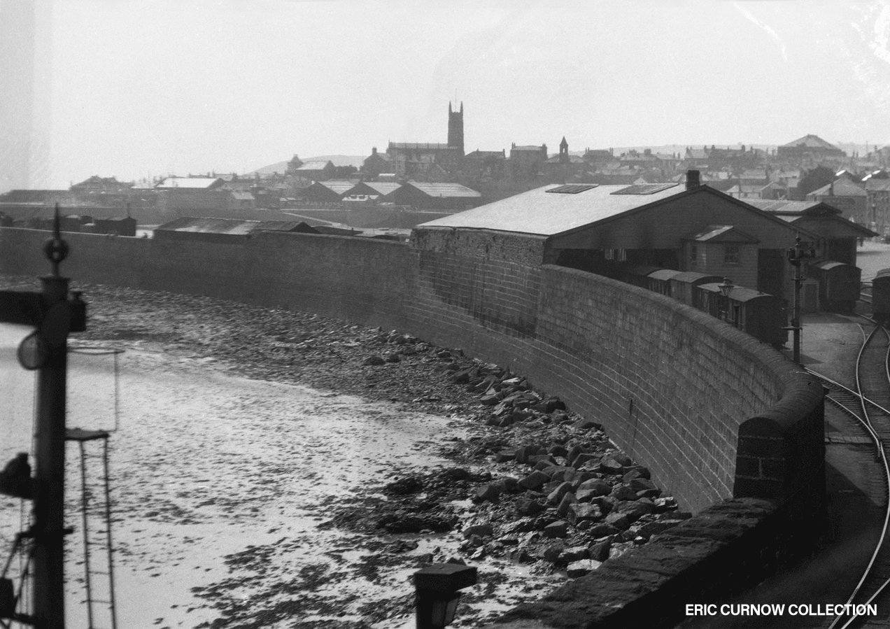 The railway station building at Penzance is a granite rebuild of the Cornwall Railway building for the GWR. Its station yard was enlarged in the 1930s and much more platform accommodation supplied; and it is in essentially in this form now. On the seaward side was goods sheds and engine shed, but these moved eastwards as the space requirements necessitated. The former Signal Box has been relocated from mid way up the platforms to beyond the ends of them, and wooden semaphore signalling was replaced by metal in the 1950s. With the demise of steam, items like turntable and water tower have also been removed.