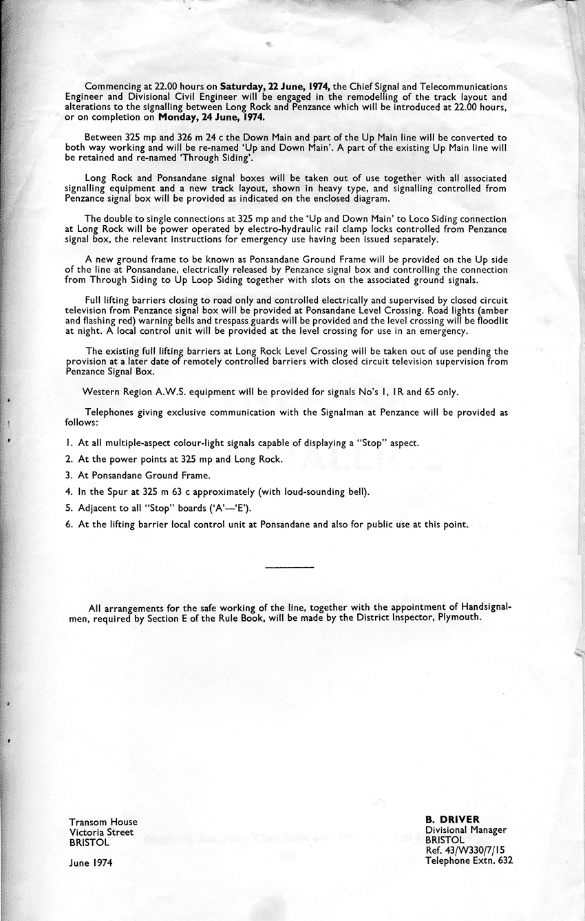 This document relates to the singling of the lines to become ”The Up and Down Main’, and associated works. The original is foolscap in size, with a long paper plan stapled inside. The whole document in miniature is shown first, and then portions taken from left to right across the sheet.