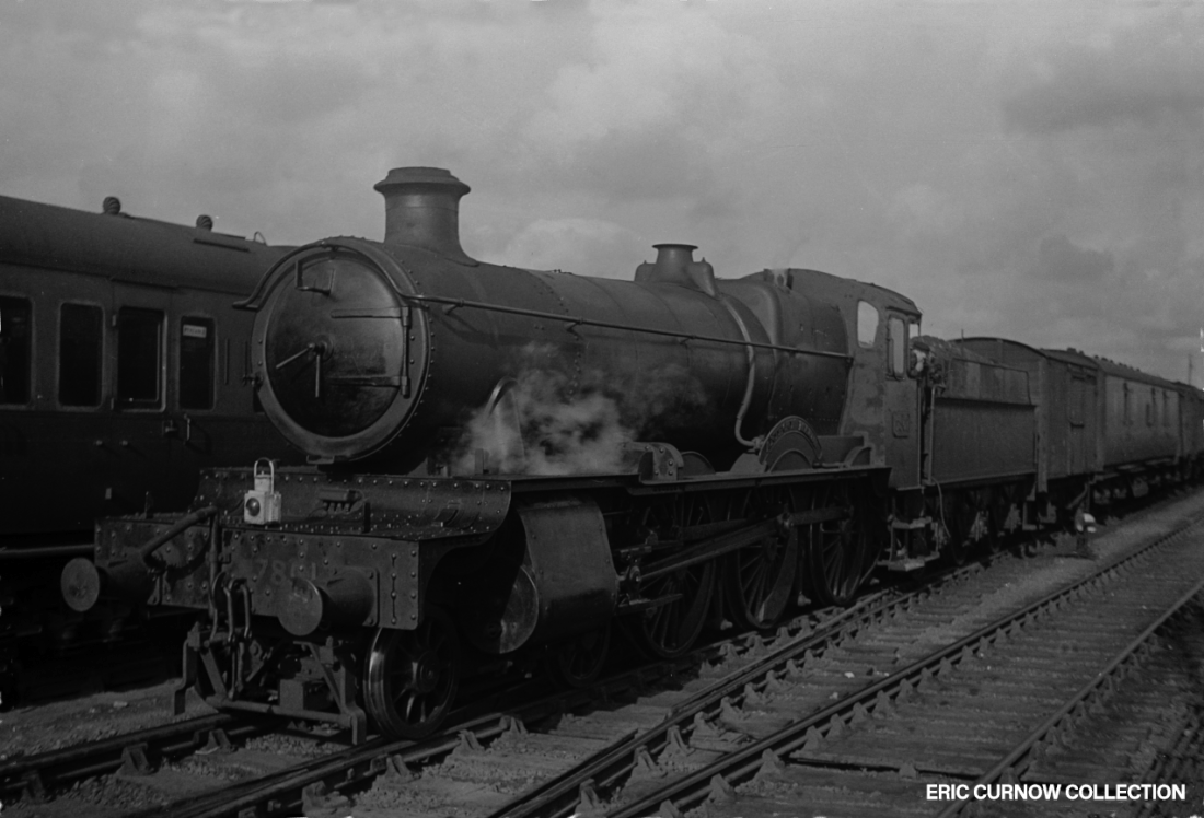 The ‘doyen’ of the class – 7801 “ANTHONY MANOR” – replete with “light engine” headcode, sets back into a train of a hotchpotch of vans at the crossover just east of Ponsandane Signal Box. It oozes steam and is in a half cleaned condition – its buffer beam number now rather faded. Nationalisation occurred 9 months earlier, but has yet to make an impression here. 480901A01-PON-s7801-SHNTG