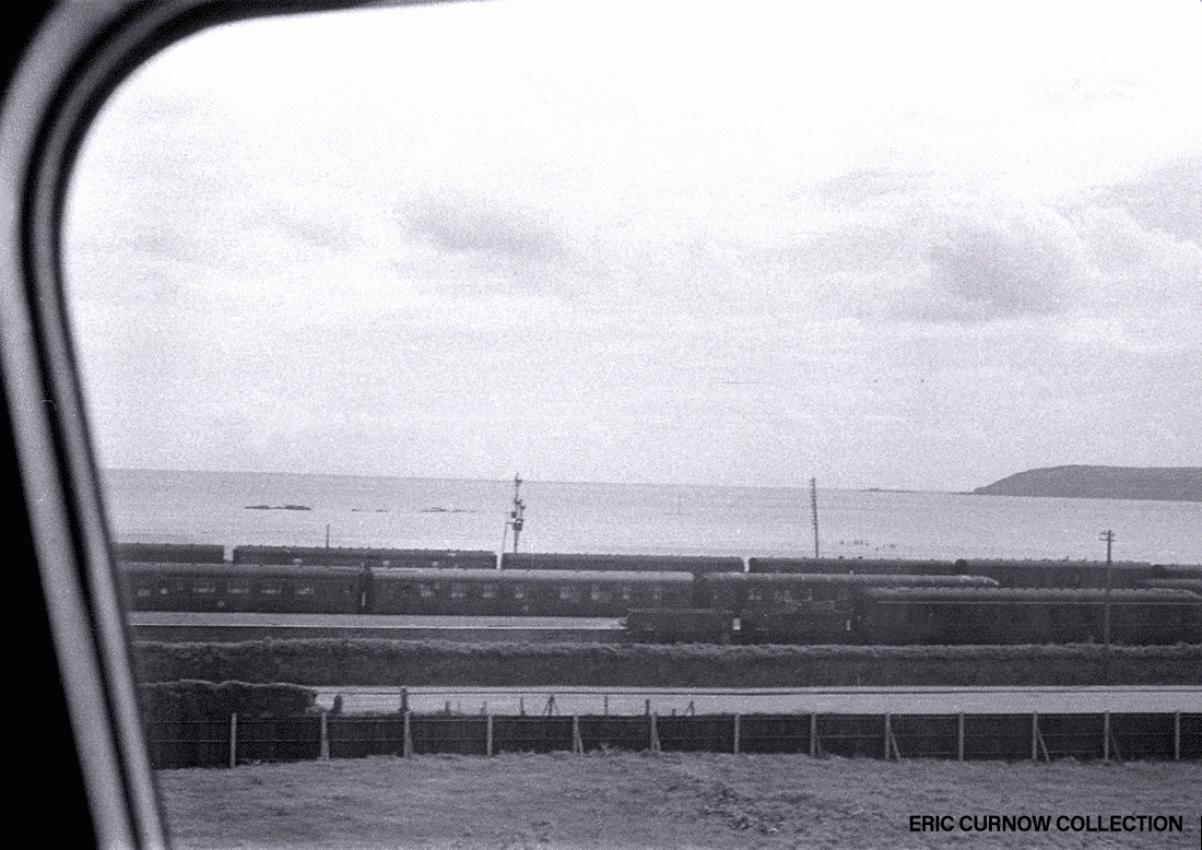 The mix of trees planted to screen the railway from Ponsandane House seem to have been chosen to ensure the view across to St Michael’s Mount is presented to best effect, this 1950s ‘Sweetman’ postcard view from the house shows. The stock of the Traveling Post Office is partially concealed in Sloper’s Siding. 50###AA01-PON-COACH-VI_SE