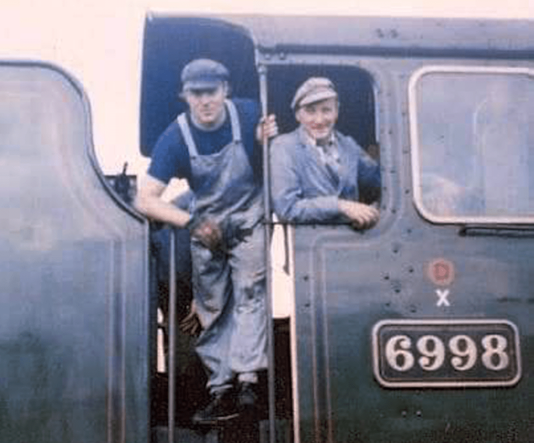 Starting as an engine cleaner at Oxford in September 1964, I was passed for firing in January 1965. I had a wonderful career retiring in January 2017 after 52 years. Your photos rekindled many memories for me especially the coaling stage and the turntable which I pushed around a few times especially when we serviced the Southern locos off the down Pines Express from Bournemouth. I worked as far as Witney because the section to Fairford had closed. I remember 9653, 9654 & 9773, and later the North British 63xx. I really enjoyed the bit of firing I did but it seems so long ago now. l’ve attached a couple of photos of myself – the first was taken at Swindon in 1965 in front of 4079 by Oxford driver Richard Tolley. We had just left our loco in the yard, an 8f, topping the tank with water after working a freight from Oxford. We were to return light engine. The second was aboard 6998 on the steam special from Hereford to Didcot in 1975 with my late friend ex-Kingham and Oxford driver Jack Langan.