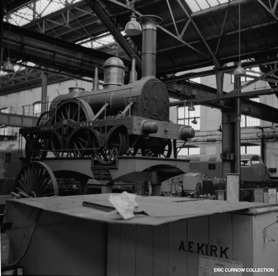 The replica GWR broad gauge loco “NORTH STAR” is shown within the works at Swindon, as D8XX ‘Warship’ Class locomotives are built in the background in the late 1950s. Representing a historic original engine, “NORTH STAR” was mounted on a plinth as inspiration for works employees to emulate the standards of the Great Western Railway. 5####CT01-SWW-N_STR-PRESD