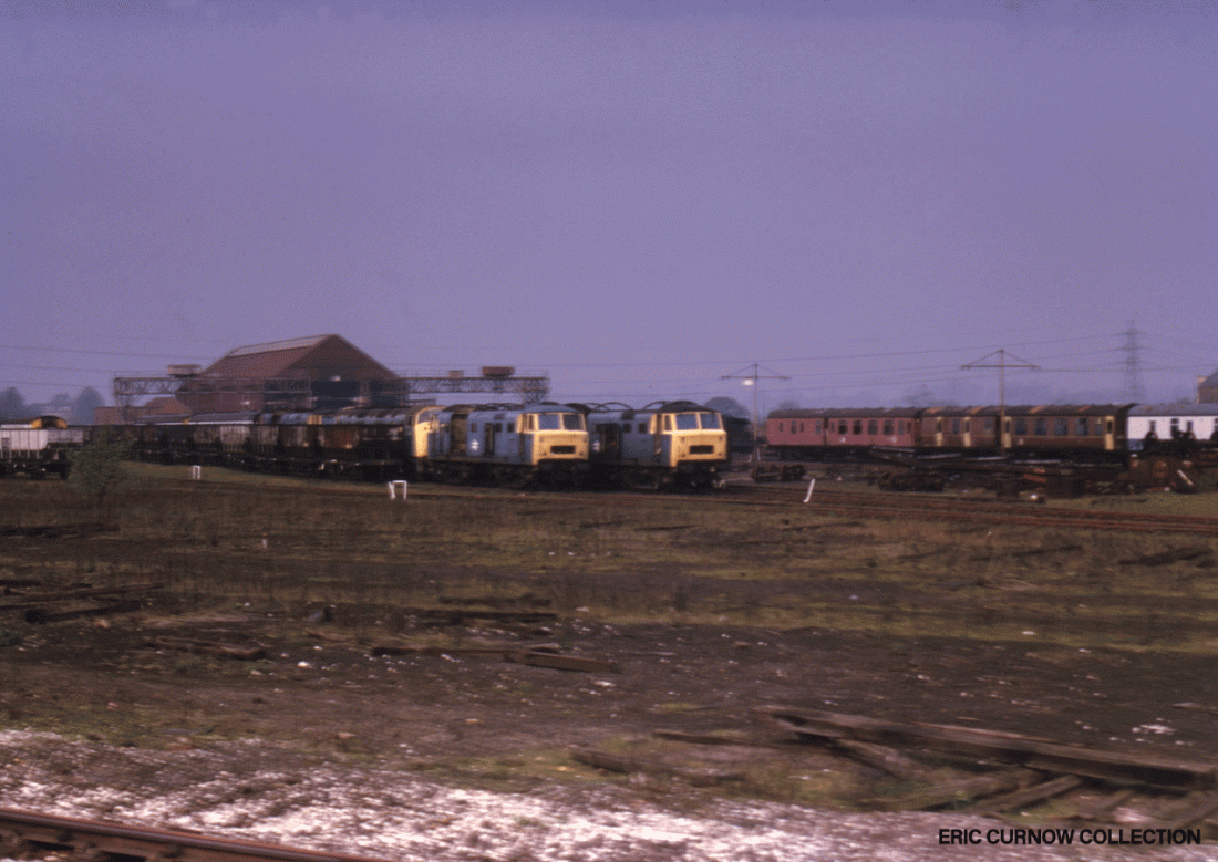 Two cannibalised Hymeks and a Warship await cutting in Swindon yard. I saw this sort of scene a few times when passing, although with so much to take in, from a moving train, the detail didn’t register very easily. It was surely unusual to see a Warship with intense blue livery as late as 1975. 75###AL01-SWW-HYMEK-SCRAP