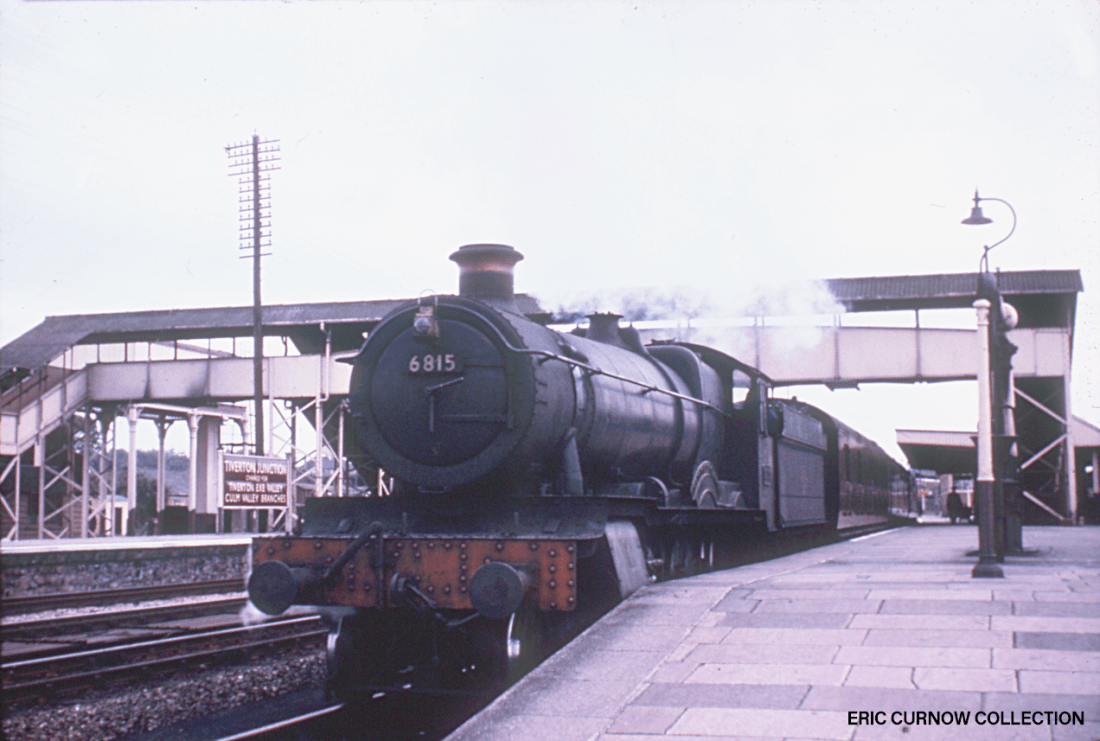 My recollections of Tiverton Junction is very sketchy, and mainly of platforms, a bridge and signal box, and later just platforms with coping stones removed so there was no prospect of a train hitting them when passing at high speed. I did see milk tanks on the south side, but nothing of the track north to Tiverton town. 6815 is shown here pausing on its journey on 31st May 1961. 610531A01-TIV-s6815-PAS_D
