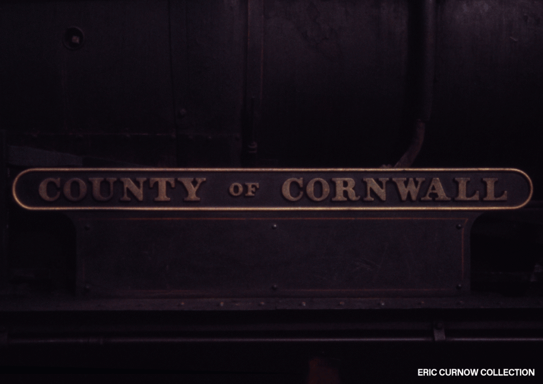 The nameplate of 1006 “COUNTY OF CORNWALL” on the side of the loco. These straight versions of the normal splasher identities were far more attractive in my opinion – sometimes too much or too little text in the same curved frame made them look contrived. 6####BN01-UNK-s1006-NAMEP