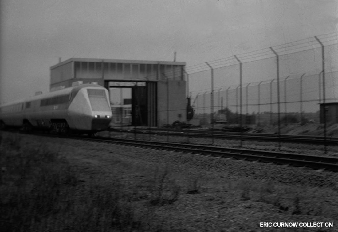 The Old Dalby Test Track was where new equipment like the APT-E – (Advanced Passenger Train – Experimental) shown here – was tested before national system introduction. The trackbed was once part of a main line between Kettering and Nottingham, and has now been partially electrified and upgraded for modern requirements. Photo: David Grant. 7####GJ01-ODY-APT-E-TESTT