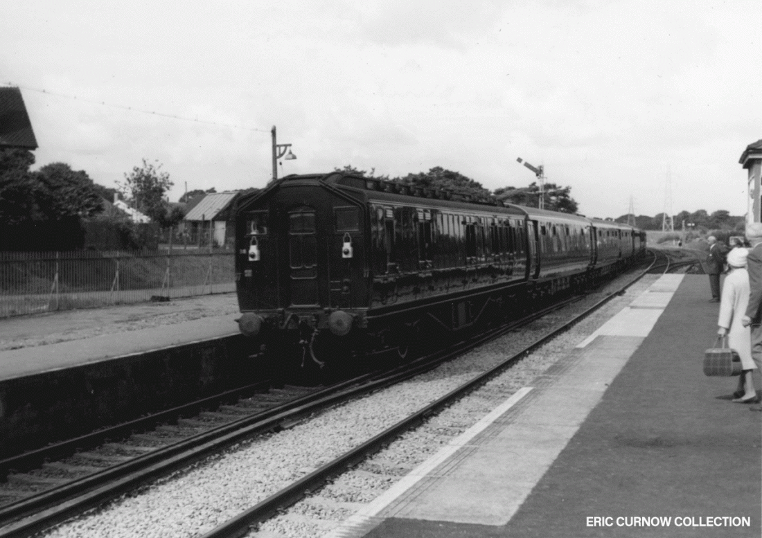 A Class 117 DMU leaves Cholsey and Moulsford station on an ‘up stopper’ in 1975, an intermediate station on the line between Didcot and Reading. Like many such minor stations, connection to the Goods Yard has been removed, and the building is fenced off for resale for non-railway use. 750727A01-CRL-3XDMU-PAS_D