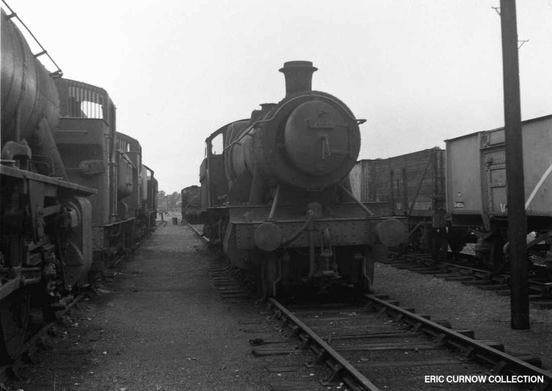 These GWR steam locomotives are all apparently from the same photo shoot – some at Churchdown between Gloucester and Cheltenham, and others seem to be on a shed, judging from the breakdown tools van parked with them. They are as follows, from top to bottom – a “Castle Class” engine; 2836 and 6164 parked up out of use; and 4101 and 7915 taken from the same overbridge.